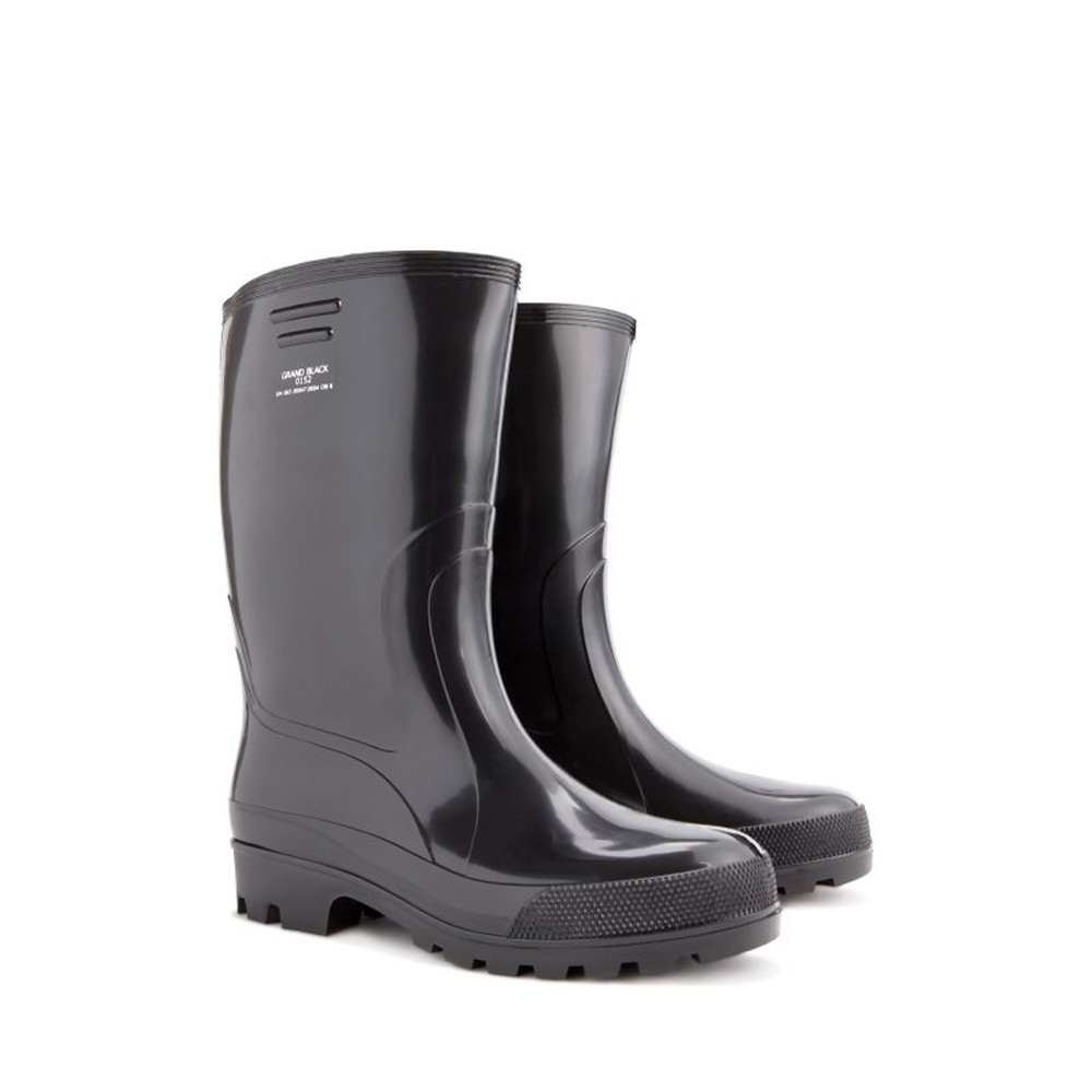Rövid szárú PVC csizma fekete színben, kivehető filc talpbetéttel és minősített csúszásmentes talppal.