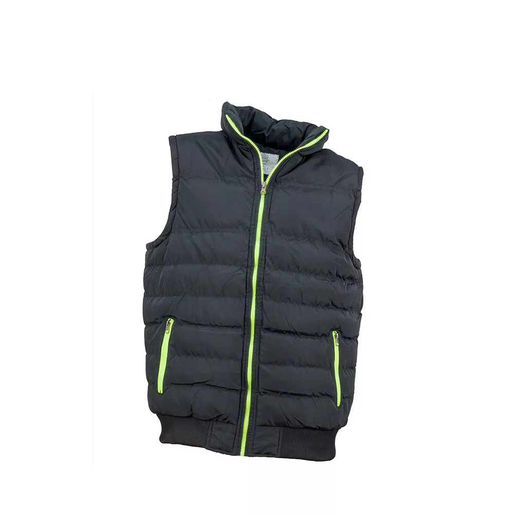 Egyenes szabású, funkcionális kialakítású pufi mellény.