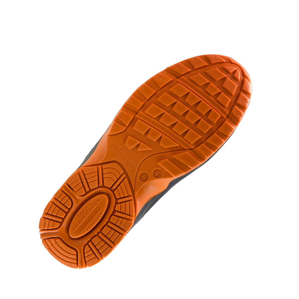 Talp:csúszásmentes, olajálló, energiaelnyelő sarok, kétrétegű PU/PU, a külső talp keményebb, a belső puhább